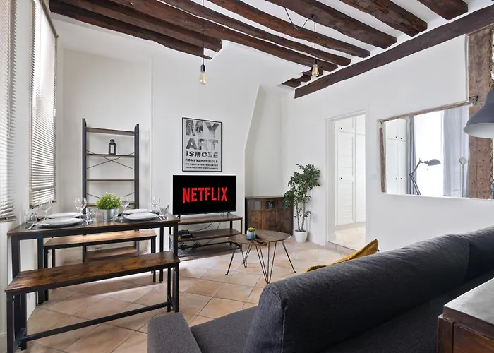 Heart Of Paris - 1Br - 4P - Le Marais 7 Free Netflix Appartement van 45 m^2 ligt binnen 15 minuten lopen van Chatelet - Les Halles treinstation en biedt snelle toegang tot Centre Georges Pompidou. Gasten kunnen fietsen en auto's huren om de omgeving te verkennen.